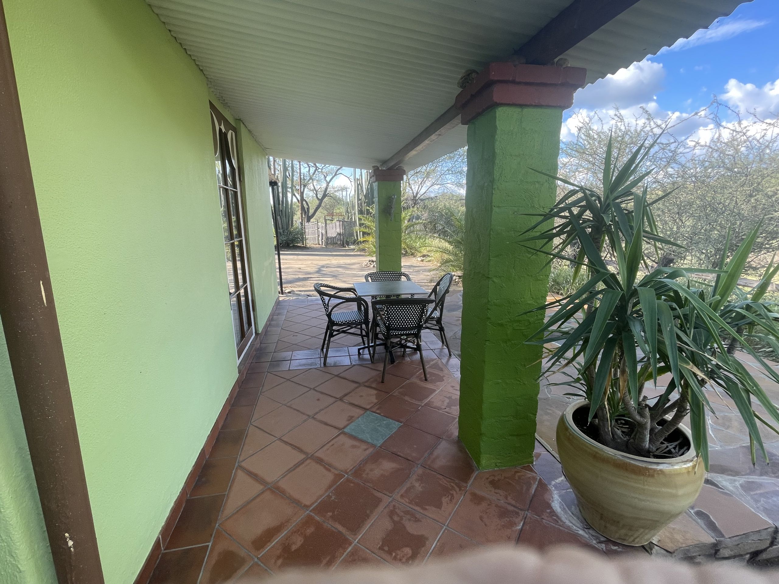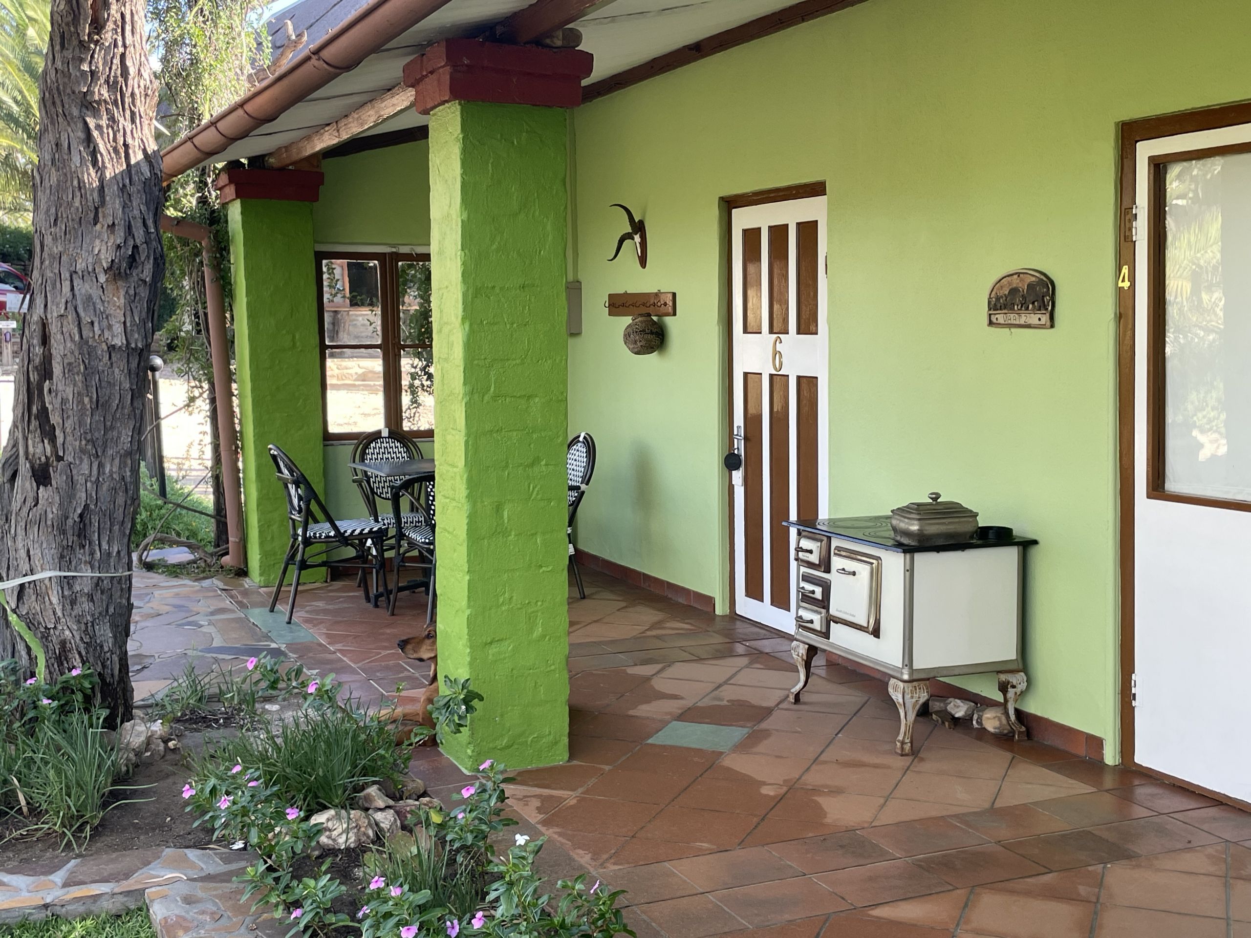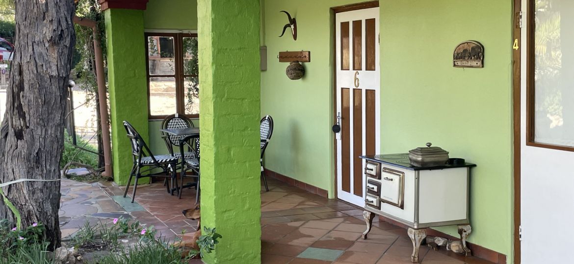 All rooms share a large veranda and small garden area with views across the surrounding landscape, creating a relaxed and social atmosphere.